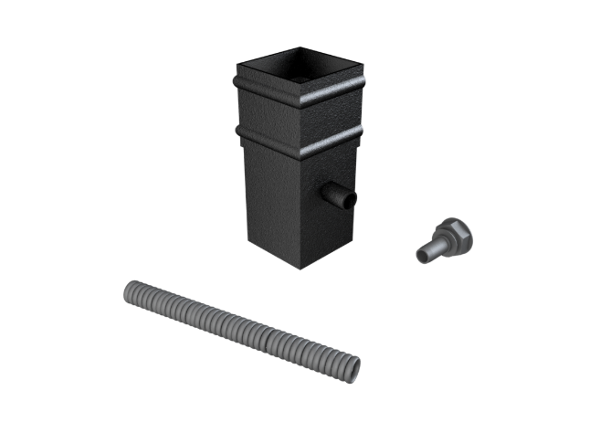 76mm Sq (Sq Edge) Cast Plain Collar Water Butt Deflector Kit Inc Tank Connector and Hose